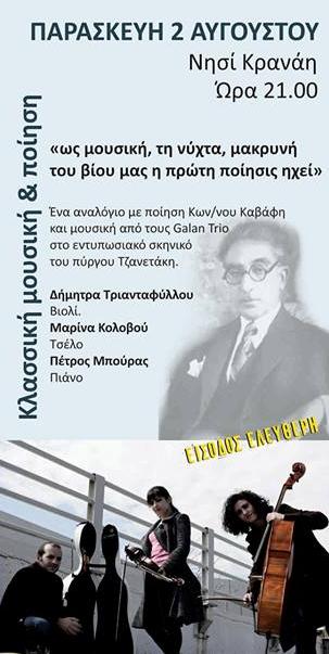 Μια βραδιά με ποίηση Κωνσταντίνου Καβάφη και κλασσική μουσική από τους Galan Trio,στο εντυπωσιακό σκηνικό του πύργου Τζανετάκη.