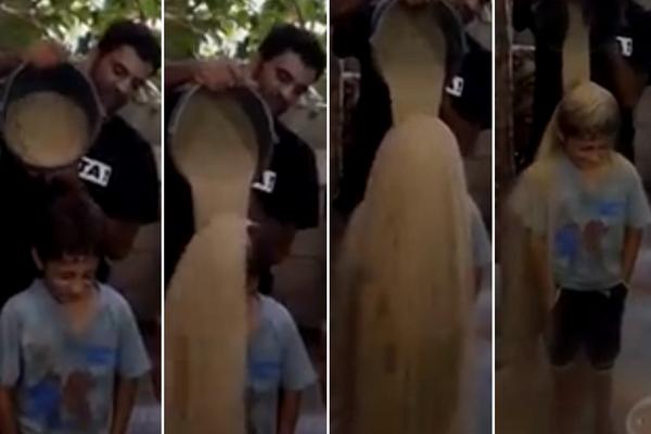 As the name suggests, the Rubble Bucket Challenge sees people pouring buckets of rubble and sand over their heads to symbolise the destruction suffered in Gaza strip over the last six weeks.