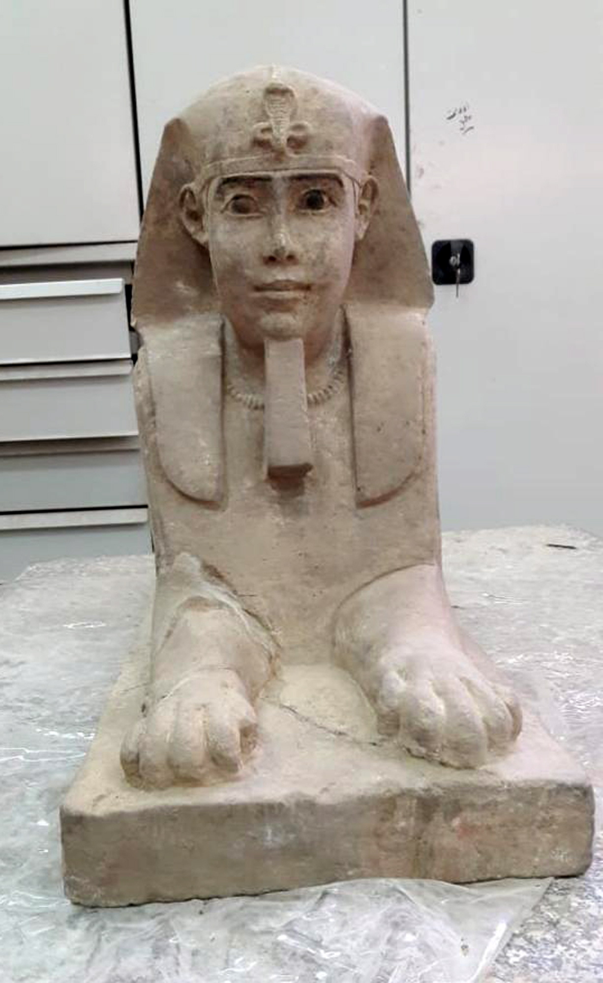 Το υπουργείο Αρχαιοτήτων ανακοίνωσε ότι το άγαλμα του μυθικού αυτού τέρατος, με κεφάλι ανθρώπου και σώμα λιονταριού, είναι κατασκευασμένο