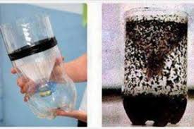 βάζουμε μέσα και ανάποδα τό επάνω μέρος του μπουκαλιού
