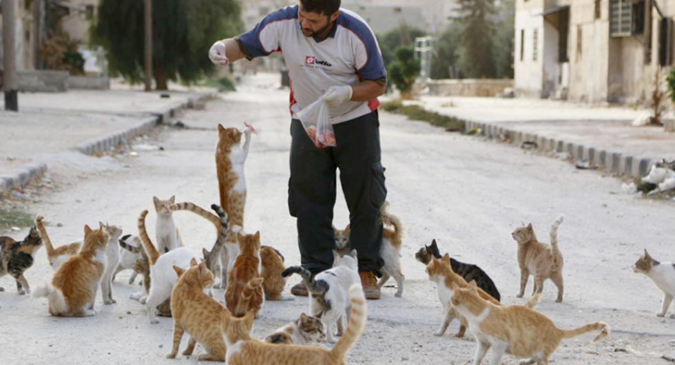 Ο Αλαά φροντίζει και ταΐζει αυτές τις γάτες