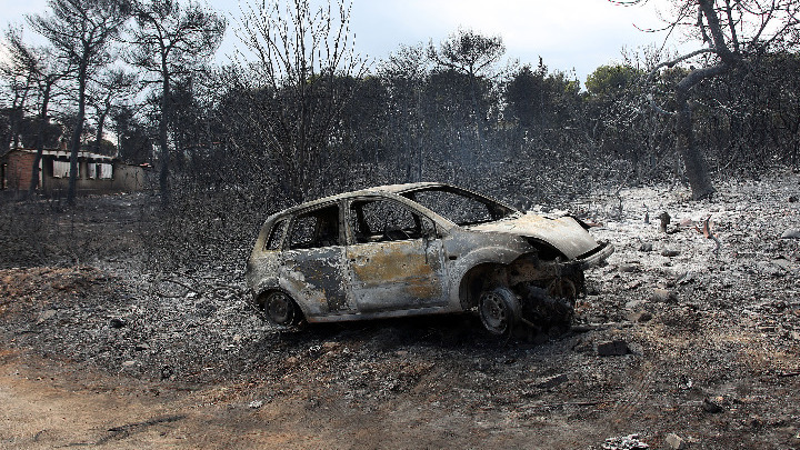 Πόλη- φάντασμα μοιάζει το Μάτι της Νέας Μάκρης, δύο μέρες μετά την πύρινη λαίλαπα που «σάρωσε» την περιοχή. Τα καμένα αυτοκίνητα έχουν απομακρυνθεί από τον κεντρικό δρόμο, την οδό Ποσειδώνος, κι από τους γύρω δρόμους, ωστόσο το σκηνικό συνεχίζουν να συνθέτουν οι στάχτες, οι λαμαρίνες από τα αυτοκίνητα και τα σπασμένα γυαλιά. Οι λιγοστοί κάτοικοι που έχουν απομείνει προσπαθούν να συνέλθουν από τον εφιάλτη που βίωσαν, καθαρίζοντας και πλένοντας τις αυλές του, περισώζοντας ό,τι τους απέμεινε.